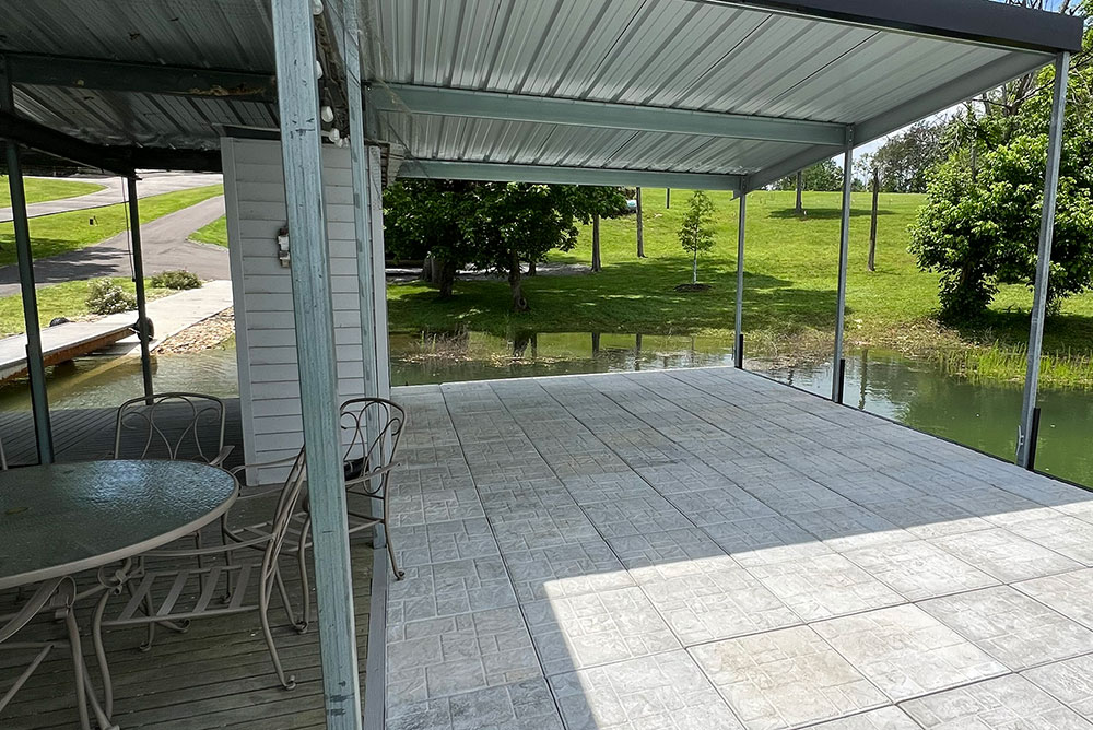 • Private dock has 2 covered slips measuring 10′ x 27′ and 8′ x 24′. A 3rd boat can be parked on the outside edge (uncovered)